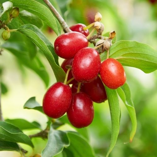 Dřín lékařský je opadavý keř, kůra je šedohnědá, listy jsou vstřícné, na líci jsou více zelené a jsou porostlé krátkými chlupy. Tento keř dorůstá výšky 4 až 10 metrů. Plodem jsou červené peckovice. Pro účely bylinné terapie se využívají právě plody sladkokyselé chuti s dužinou. V čínských herbářích je o něm první zmínka v díle Shen Nong Ben Cao Jing z doby ca 3. stol. n. l.