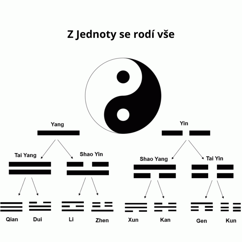 „Podle něj (daoismu) je svět tvořen z Qi, prapůvodní substance-energie, skládající se ze dvou protikladných, avšak v sobě obsažených a spojených složek – Yinu a Yangu. Vlastno...